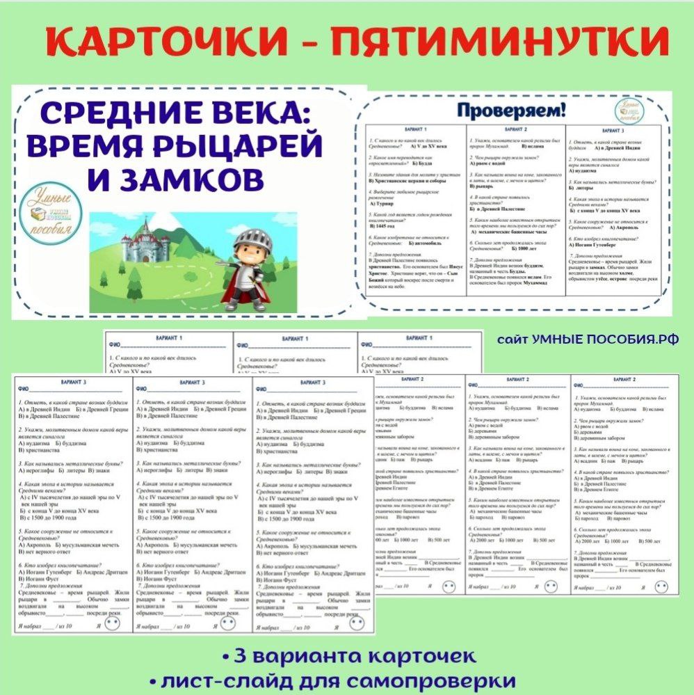 Карточки-пятиминутки. Средние века: время рыцарей и замков.